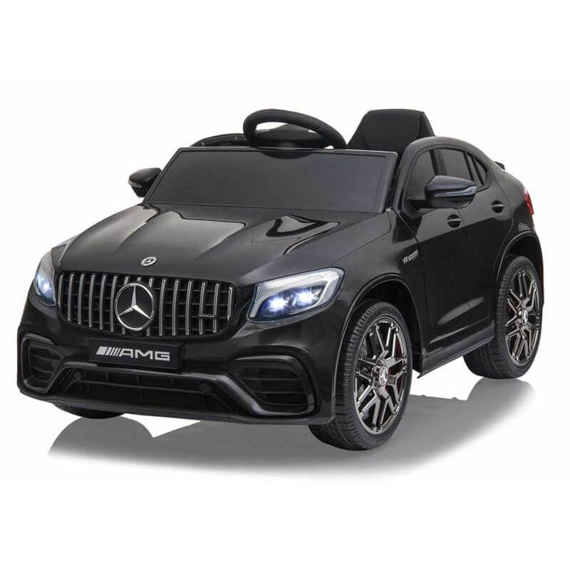 Elbil Mercedes AMG GLC 63 S coupe svart Jamara som drivs på ett starkt 12 volts batteri. En superfin elbil till barnens utelek. Bilen har två hastigheter, låg eller snabb. Man kan skifta mellan 2-hjulsdrift och 4-hjulsdrift. Starkt batteri på 12 volt driver den kraftfulla motorn, det ger en lång körtid på ca 1 till 1,5 timma. Hoppa in i bilen och kör en sväng, känn vinden i håret och njut!