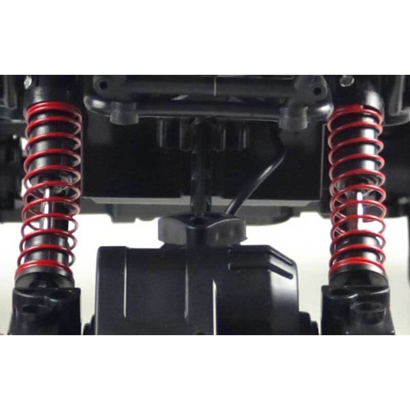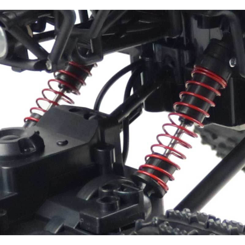 Bilen har kraftig konstruktion och en stark motor för att klara av den tuffaste terrängkörningen. Dess elektronik är stänkskyddad för att inte ta skada av fukt. Tack vare alla dess roliga egenskaper så lämpar den sig perfekt för att köras utomhus i nästan all slags terräng. Bilen styrs med 2,4 Ghz frekvens och har en räckvidd på ca 50 meter, den har även LED-belysning fram som gör den extra fräck i mörkret. Den här bilen är verkligen ett måste för en bilfantast och med dess robusta konstruktionen och de fräcka funktionerna så blir den snabbt en stor favorit!