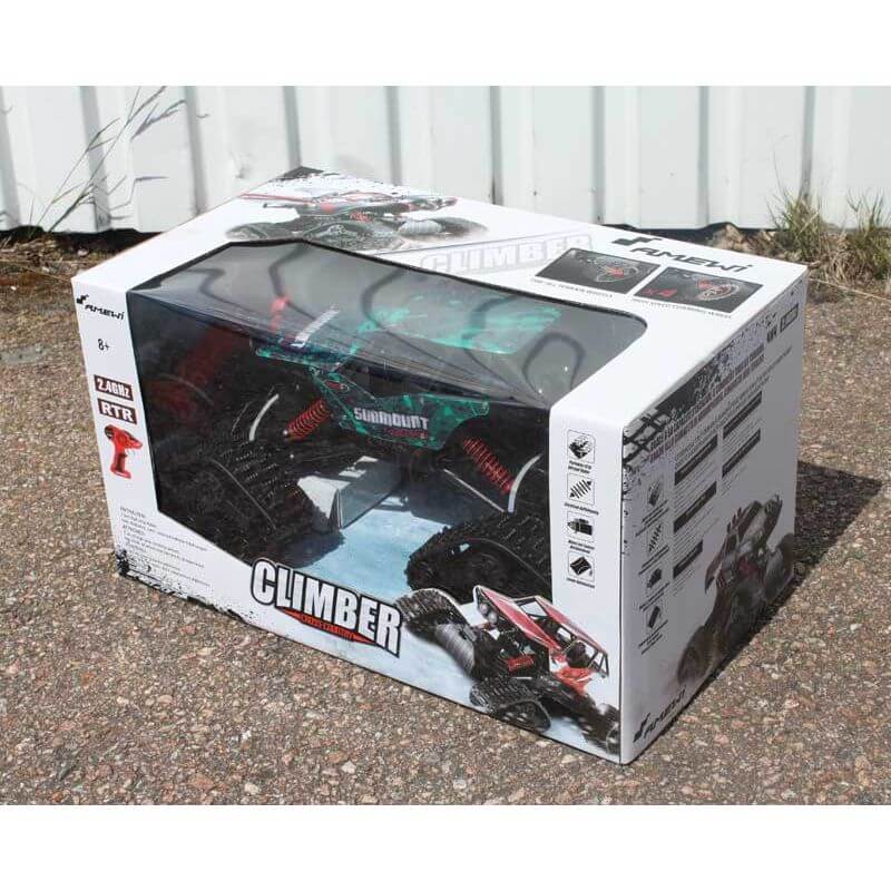 Amewi radiostyrd bil Climber Crawler 4WD Röd, spana in den här riktigt tuffa bilen. Bilen är kraftigt byggd med två starka motorer, drivning på alla fyra hjul och otroligt tålig vilket gör den till en riktigt rolig bil att köra. Den klarar nästan all terräng, allt från sand, gräs, grus och steniga sluttningar. Batterier ingår. Skala: 1:12. Längd: 37,5 cm. Topphastighet: 15 km/h.