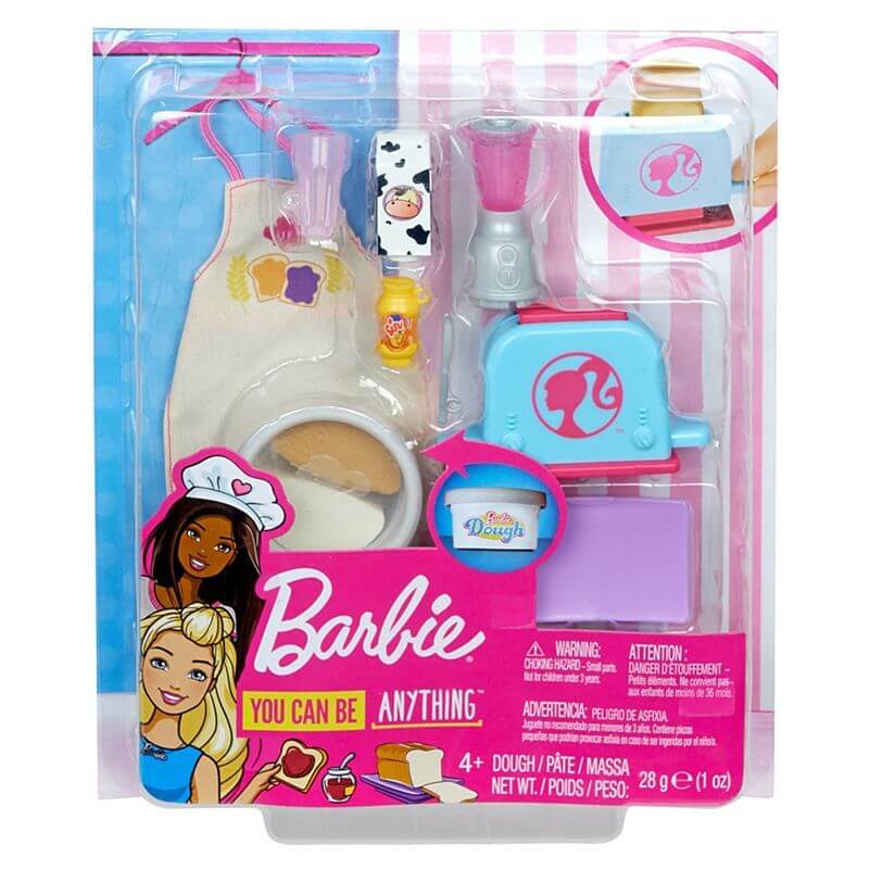Barbie behöver lite utrustning när hon ska mixa sin nyttiga smoothie. Eller så kanske hon ska göra en smarrig milkshake eller något annat gott.
