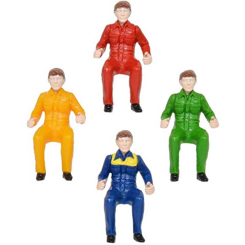 Dessa figurer passar till alla fordon med avtagbar hytt från Britains. I setet får man fyra färglada figurer, blå, röd, grön och gul som kan sitta i och köra gårdens traktorer. Superkul!