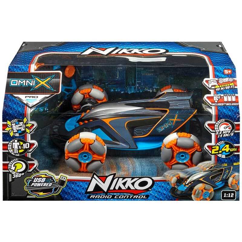 Radiostyrd bil Omni X från Nikko med specialdäck, så att bilen kan drifta och sladda i sidled. Den kan också spinna runt och göra andra roliga tricks. Komplett med batteri och USB snabbladdare, laddtid endast 1 timme. Hastighet 14 km/h. Längd: 40 cm.