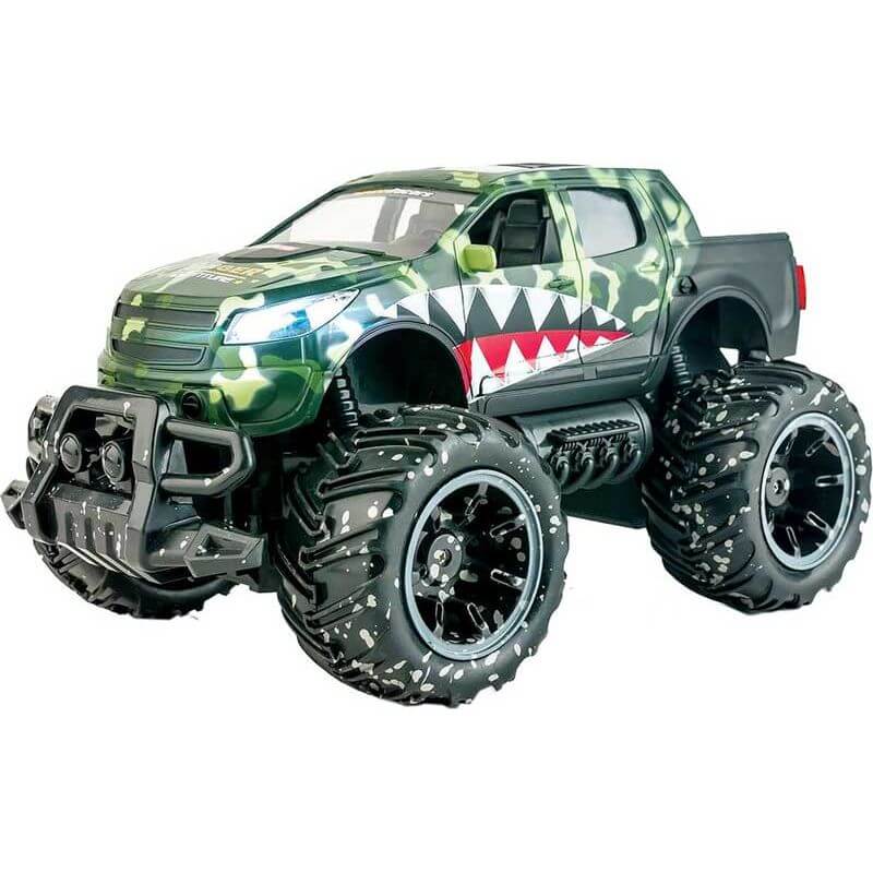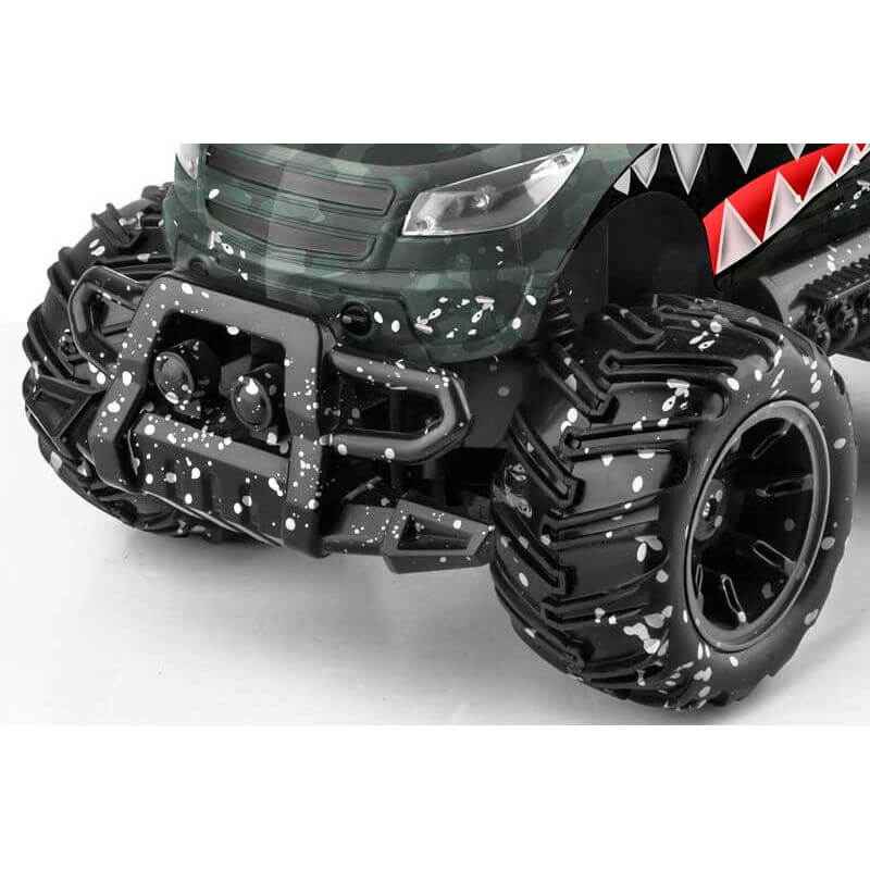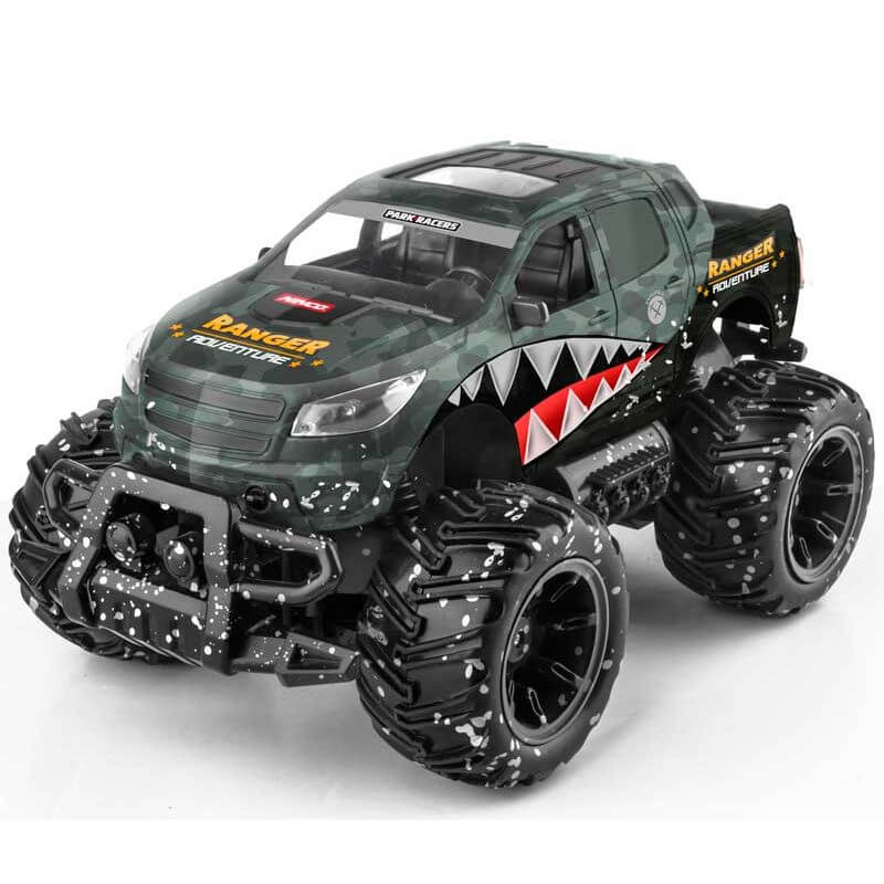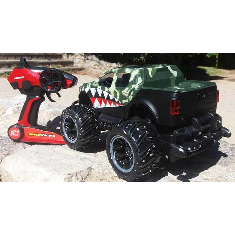 Spana in denna superhäfta Monstertruck, en radiostyrd bil Ninco Ranger! En tuff monstertruck med camouflage kaross och dekaler som liknar vassa tänder.