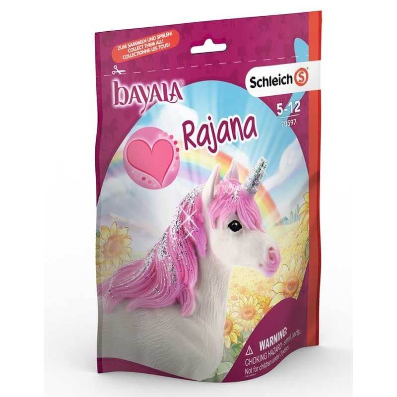 Den vetgiriga enhörningen Elany tillhör en grupp av sex föl, som alla har små gulliga blomtatueringar. De lever tillsammans på de underbara blomsterängarna i bayala. Rajana är otroligt nyfiken och gillar att lägga näsan i blöt överallt. Längd: 12,5 cm.