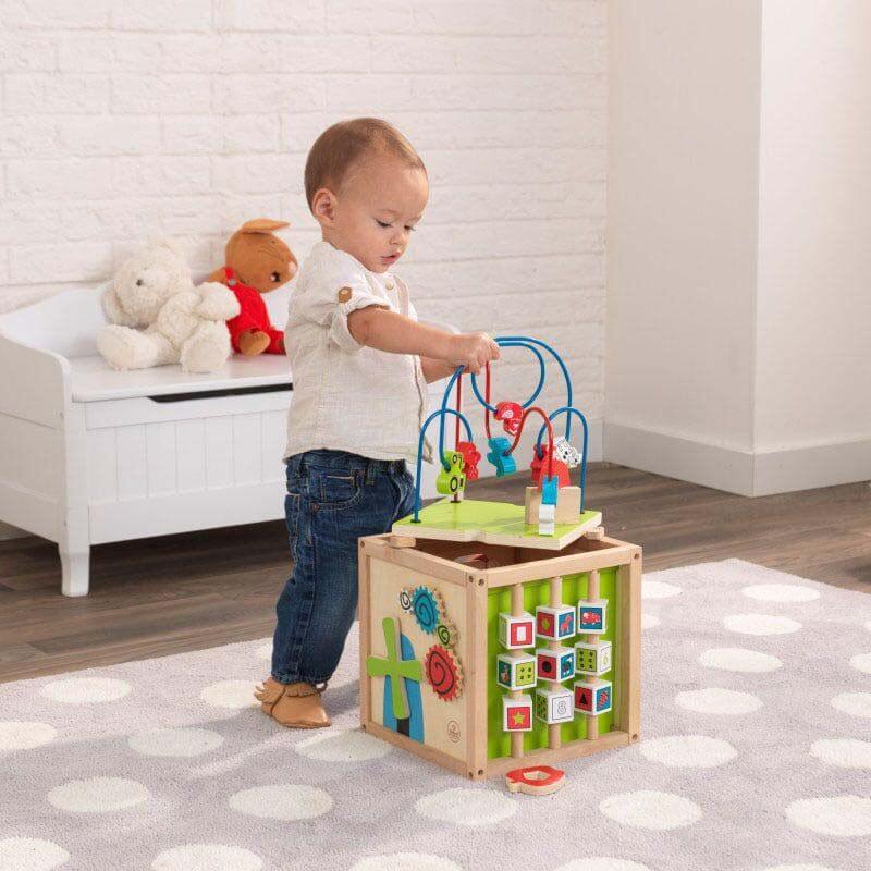 KidKraft Kulbana Bead Maze Cube, en rolig aktivitetskub som bjuder barnen på oändligt med skoj och lärorika aktiviteter. Låt barnen utforska kubens alla sidor, det är ett perfekt och roligt sätt för dem att utveckla sina förmågor.