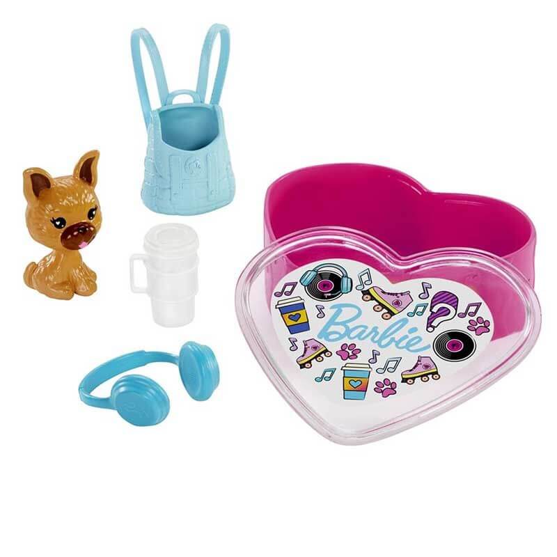 Barbie Husdjur Color Reveal, ett roligt lekset med husdjur och fina tillbehör som kommer som en trevlig överaskning för barnen. I den hjärtformade lådan gömmer sig ett eller två små husdjur, exempelvis två små kattungar eller en större hundvalp. Till dem ingår även en bärväska och två fina tillbehör, det kan vara ett par solglasögon, en glass eller kanske en pizzaslice. Vilken av de 6 olika husdjurskiten som gömmer sig i förpackningen blir en rolig överaskning som man avslöjar genom att stoppa den i varmt vatten och röra om, vattnet kommer ändra färg och man vet att det är klart när man ser Barbie loggan på locket. Superroligt för alla barn!
