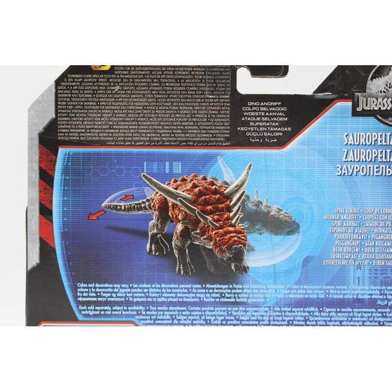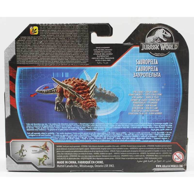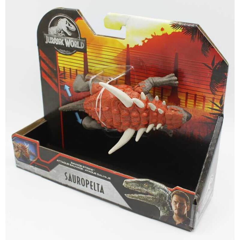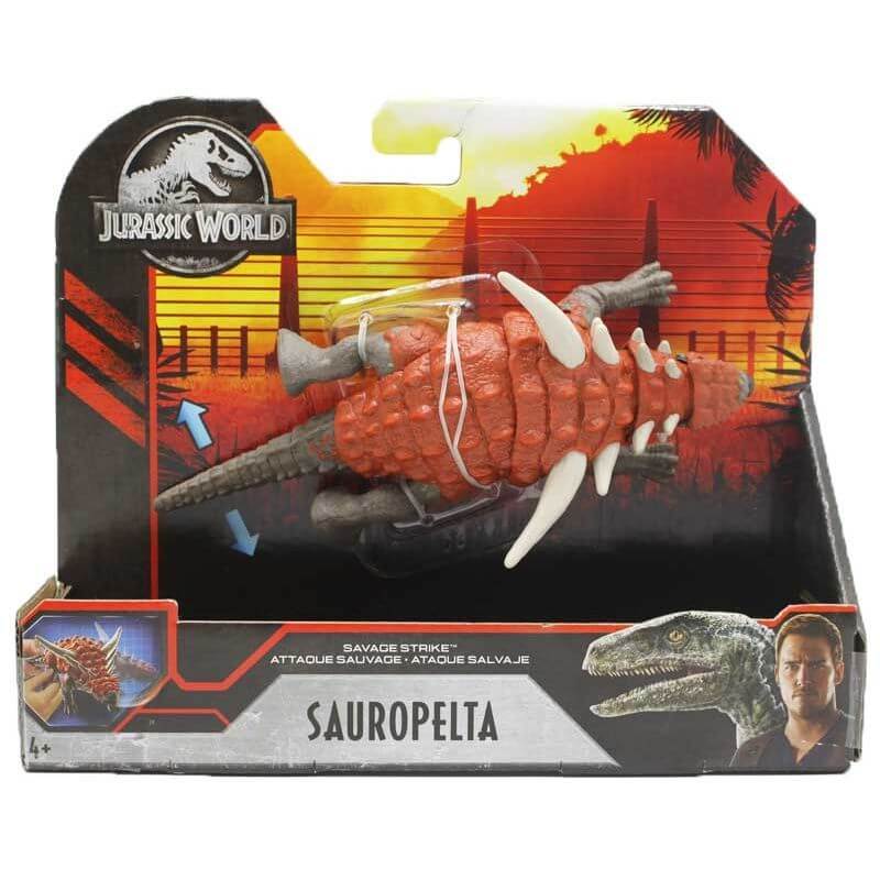Jurassic World Sauropelta Dinosaurie Savage Strike, en fin leksaksdinosaurie som föreställer en växtätande Sauropelta. Dinosauriens många rörliga leder, de roliga funktionerna och dess detaljerade utseende gör den otroligt rolig för barnen att leka med. Sauropelta är en dinosaurie som går på fyra ben och på ryggen har den långa spjut/horn som sticker ut, perfekt skydd mot fiender och rovdjur.