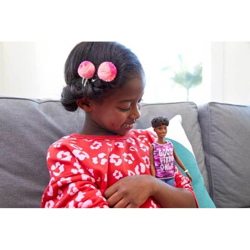 Barbie Fashionistas docka No. 128, här är Barbie redo för en ny spännande dag. Idag blir det nog en träff med sina vänner, de ska till en lekplats och ta med sina barn.