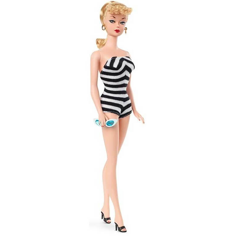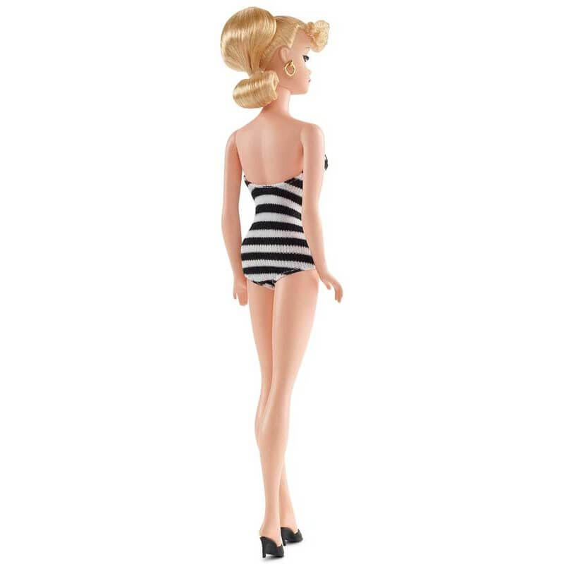 Med inspiration från dockan som från början startade allt kommer nu den här med samma svart/vit randiga vintage baddräkt, originalansiktet och den ikoniska sminkningen.