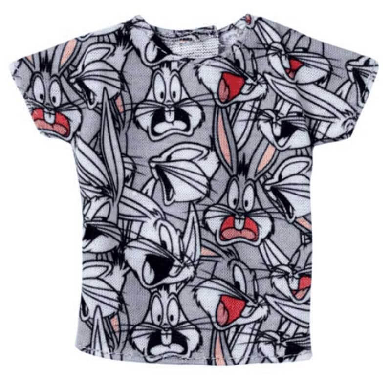 Barbie Looney Tunes Fashion Topp, en fin topp till barnens Barbiedockor så att de kan klä sin docka riktigt fint. Toppen är grå med kaninen Snurre sprätt på med alla hans roliga ansiktsuttryck, mixa och matcha gärna med andra fina dockkläder från Barbie och ge dockan en egen unik stil.