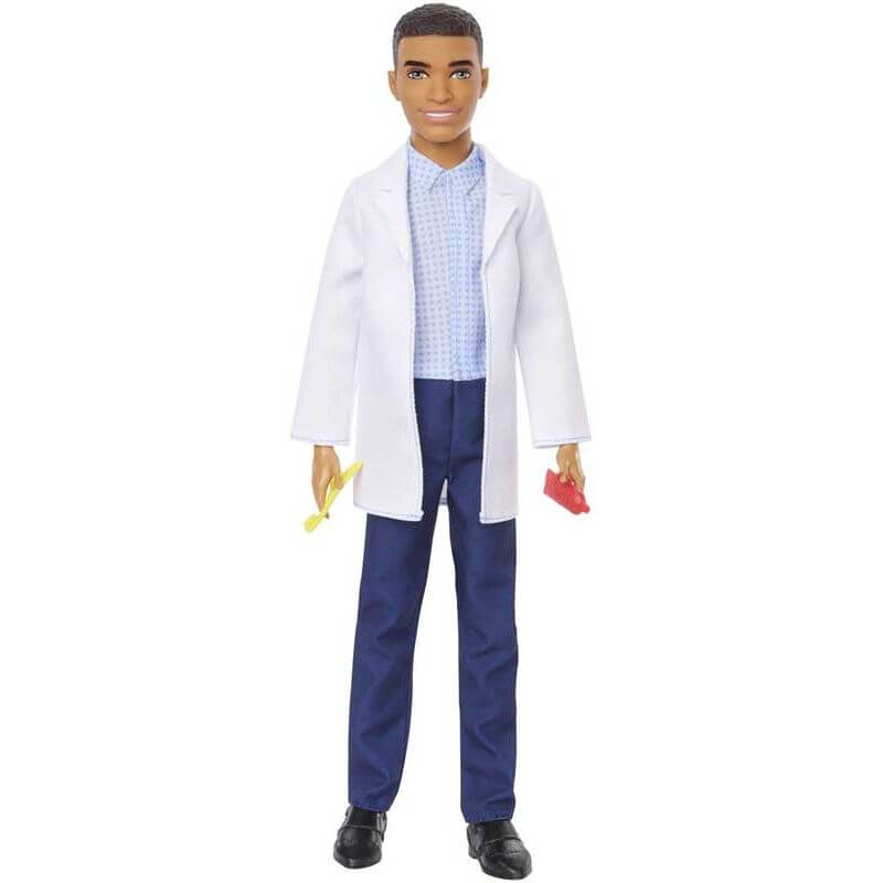 Barbie Ken gör karriär som tandläkare, ett riktigt roligt jobb. Att få hjälpa till personer med deras tänder, hålla dem rena och fina är alltid lika roligt. Kanske måste ett och annat håll lagas, men det går fint det. Höjd: 30 cm.