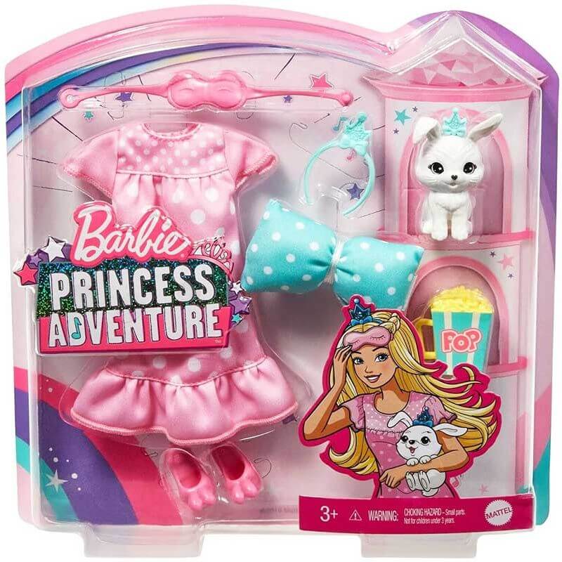 Barbie Princess Adventure Fashion Pack Pet Bunny, ett roligt tillbehörsset för barnens barbiedocka. Med dessa fina kläder och accessoarer kan barnen klä upp sin docka inför en trevlig myskväll i soffan med popcorn och en spännande film.