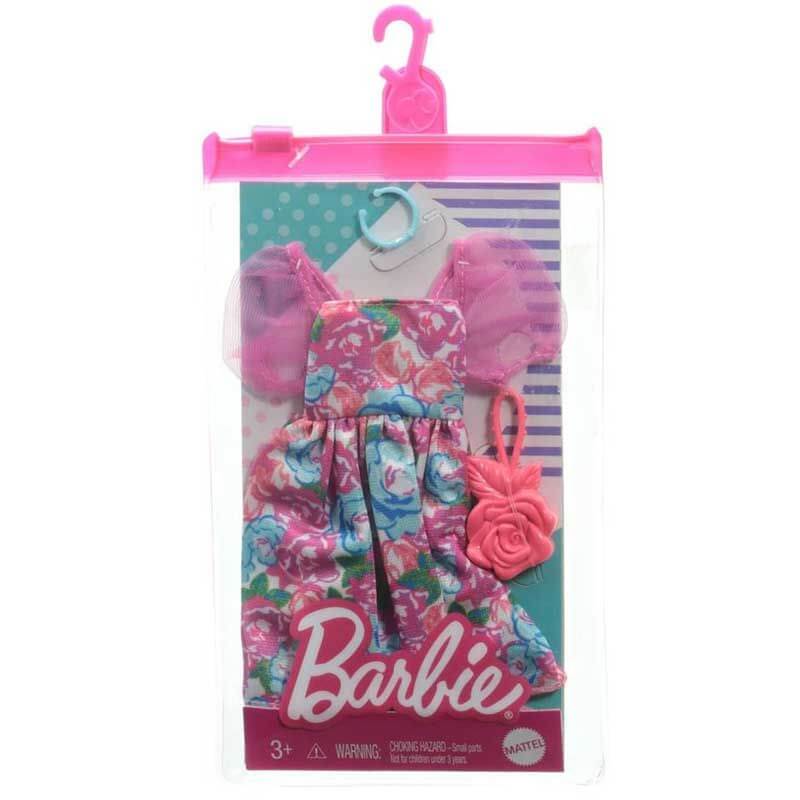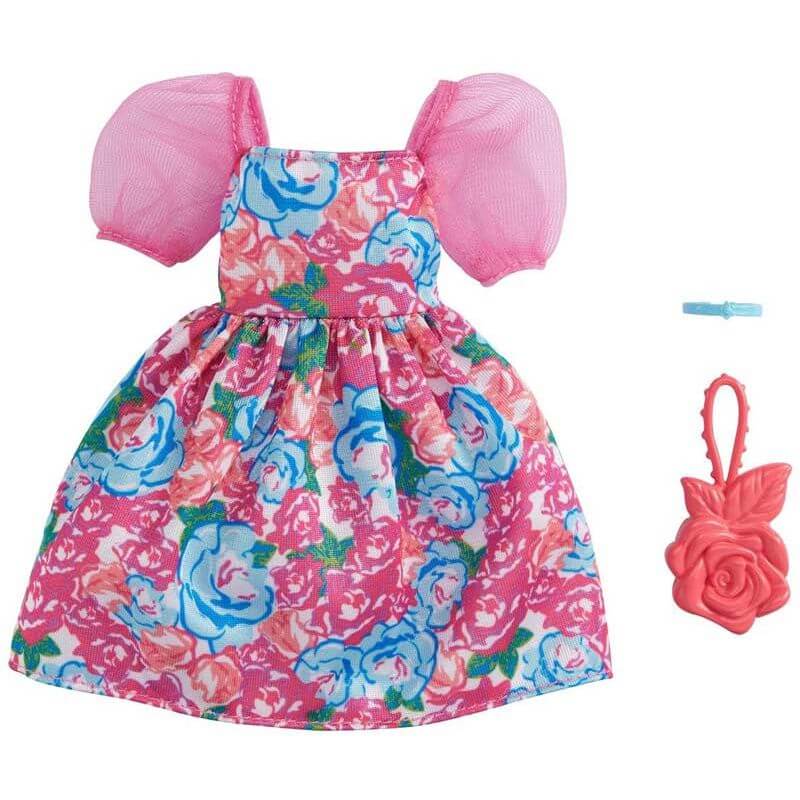 Barbie Complete Looks Rosa Blommor, en supersöt klänning med passande tillbehör som barnen kan klä sin Barbiedocka i.