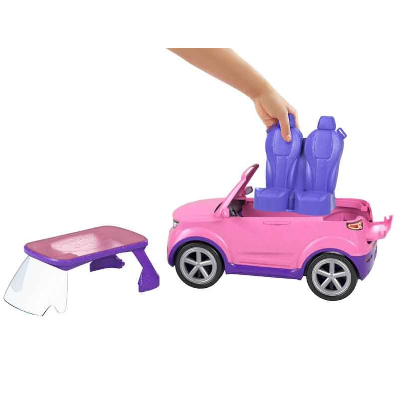 Taket är avtagbart och blir då en scen där Barbie kan uppträda, bilens säten kan även plockas ur bilen så blir de platser för publiken.
