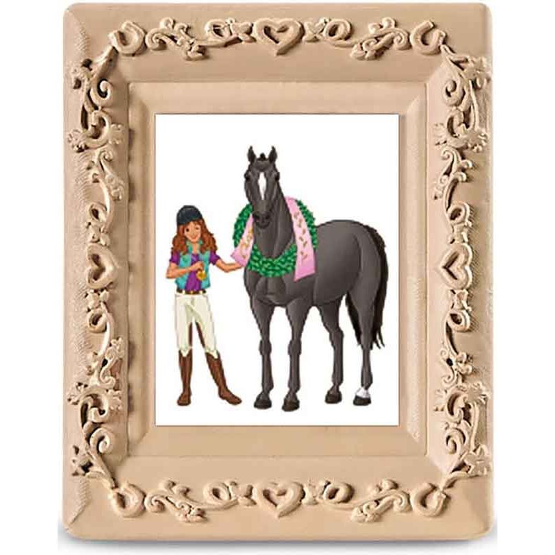 Även hästen blir belönad med en fin prisrosett för sin imponerande bedrift. I ramen sitter ett foto som blir ett fint minne för livet av detta fantastiska ögonblick.