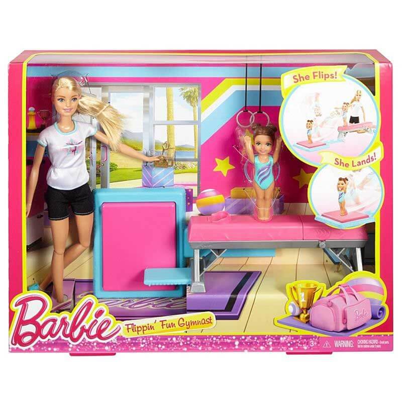 Barbie Flippin Fun Gymnast, ett superroligt lekset där barnen kan hjälpa Barbie att lära ut roliga gymnastikkonster på balansbrädan.