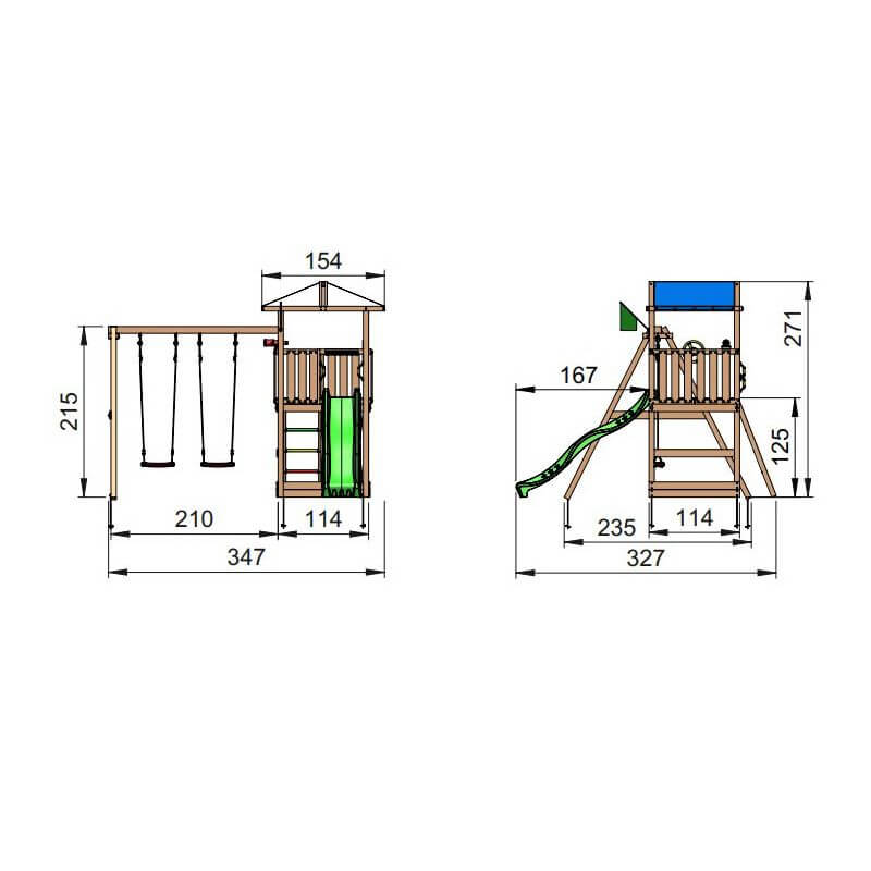 Area exkl. säkerhetsarea gungmodul: B:220 x D:235 x H: 215 cm