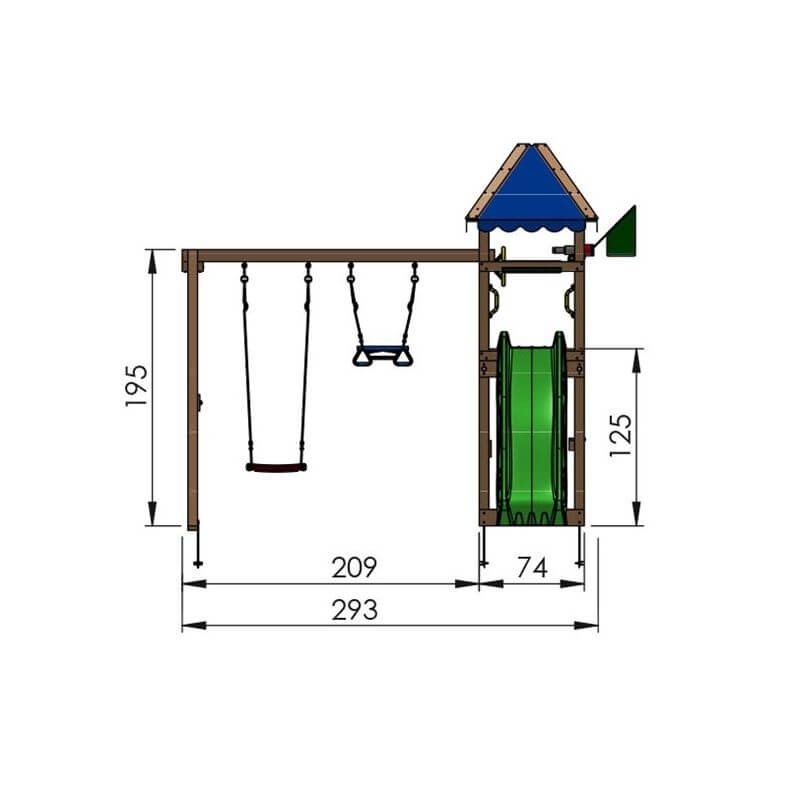 Säkerhetsområde gungställning: + min. B: 225 x D: 225 cm