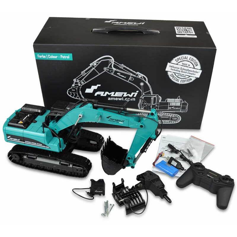 Den har en härlig färg och design och är verkligen en jättesnygg radiostyrd grävmaskin. Riktigt hög kvalitet från Amewi.