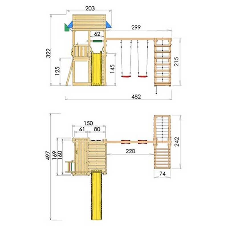 Inklusive den spännande och utmanande Climb Modul x'tra, där motoriken kan sättas på prov på klättervägen eller i klätternätet, och där gungan står redo att ge sus i magen efter en härlig klättertur. Inklusive klättermodul med två gungor, klättervägg, klätternät, ratt, blå rutschkana 265 cm och sandlåda samt 120 kg certifierad sandlådessand levererad i 6 påsar om 20 kg. Lektornet består av tryckimpregnerat trä. Testad för kvalitet och säkerhet (enligt EN: 71-1, 2, 3, 8 & 9) CE-godkänd. Lektornet levereras som komplett monteringsset med färdigsågade trälängder.