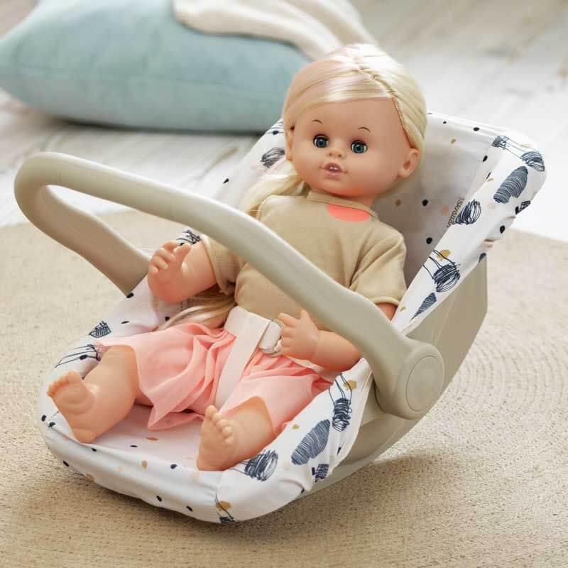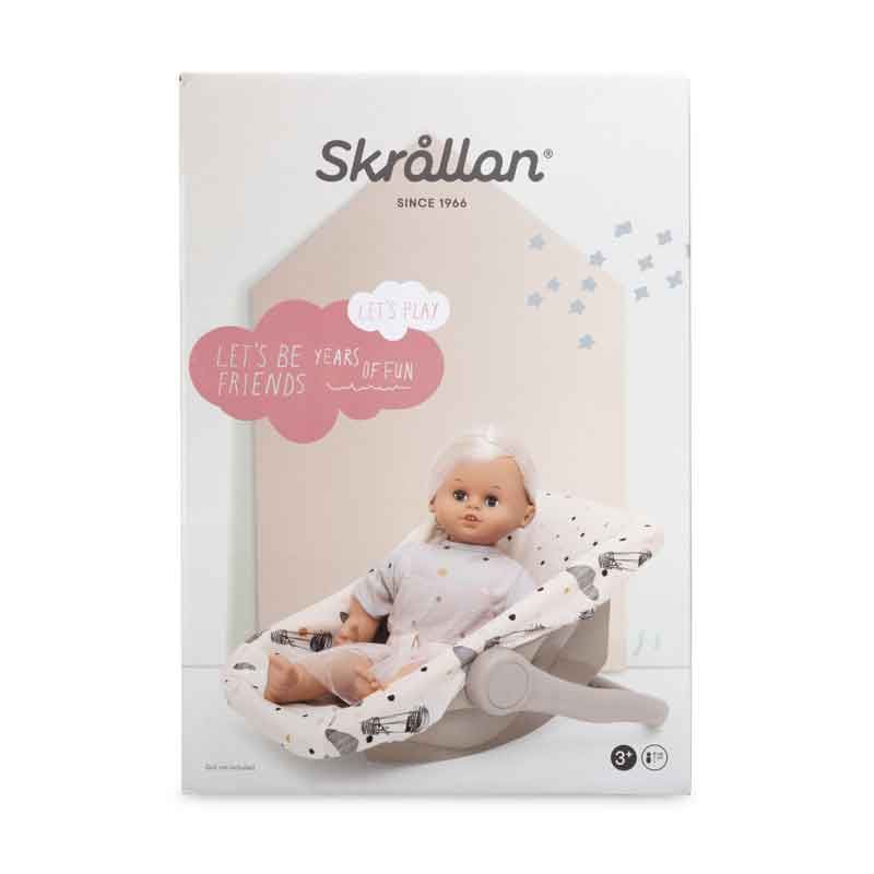 Alla måste åka säkert i bilen, även Skrållandockan! Med den här bilstolen sitter Skrållan tryggt i bilen och du kan också bära med dockan på utflykten.