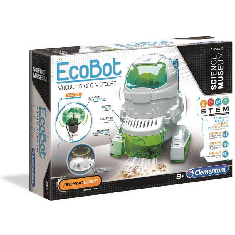 Clementoni Ecobot Leksaksrobot, en rolig robot för tekniskt intresserade barn. Bygg ihop Ecobot själv för att sedan utforska dess funktioner.