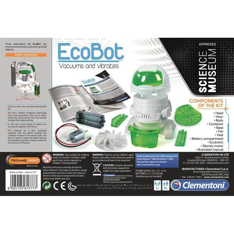 Clementoni Ecobot Robot, en rolig robot för tekniskt intresserade barn. Bygg ihop Ecobot själv för att sedan utforska dess funktioner, roboten fungerar som en liten dammsugare i robotformat då den kan köra runt och suga upp småskräp och damm. Städning har aldrig varit roligare! Höjd: 14 cm.
