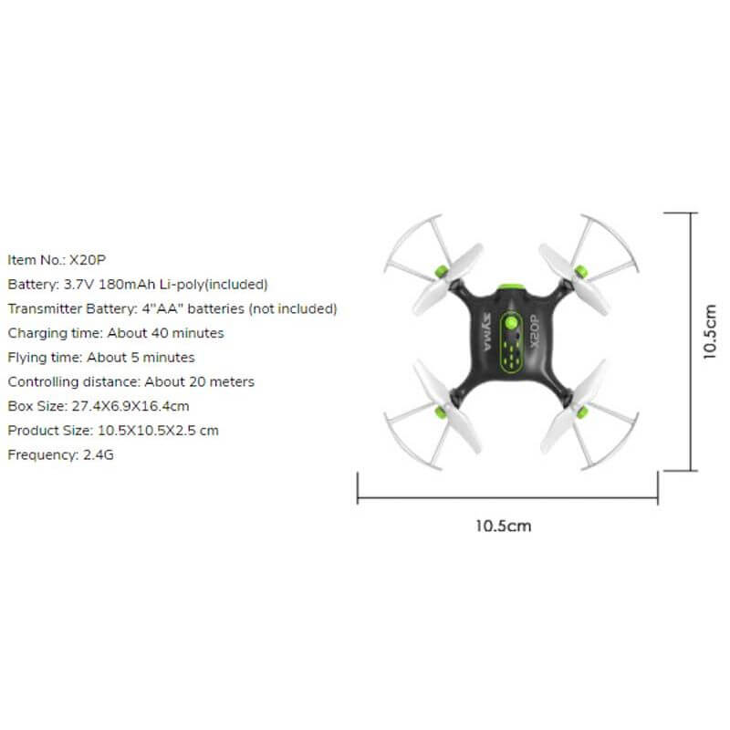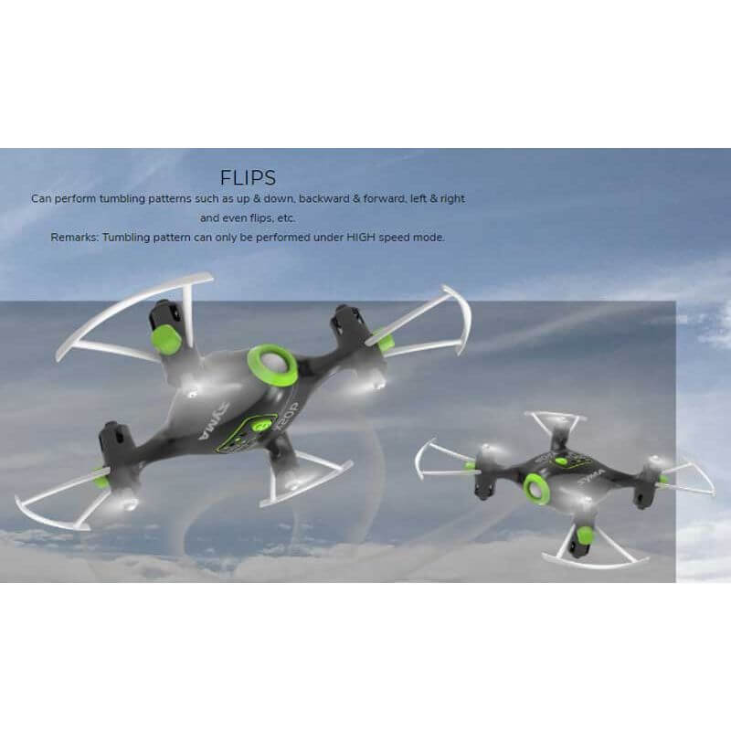 Radiostyrd Drönare Syma XP20 med hovering, en fantastiskt fin drönare i snygg design i svart och grönt. Drönaren har två hastigheter och looping funktion.