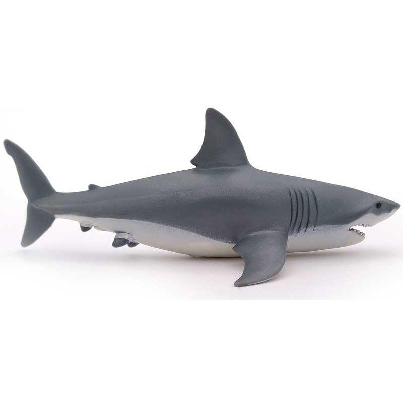 Papo Vithaj, en skräckinjagande leksakshaj för barnens vattenlekar. Ta med hajen i badkaret, poolen eller varför inte till en sjö eller hav där fantasin ger leken liv, extra roligt är det så klart om man har flera andra vattenlevande figurer att leka med tillsammans med hajen. Längd: 19 cm. Utgått, se andra leksaksdjur, klicka här.