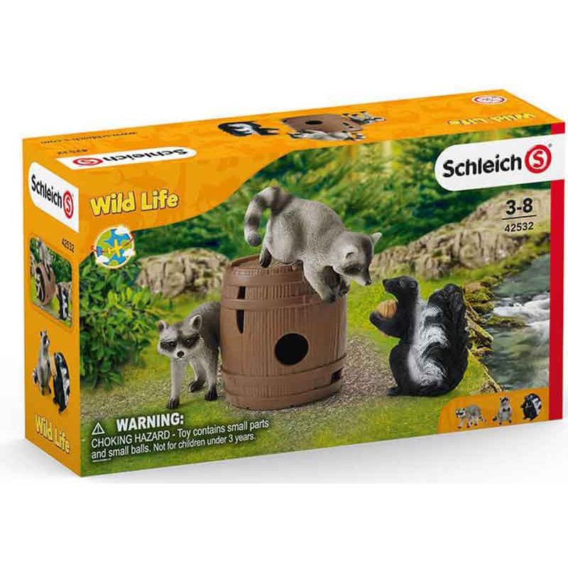 Schleich Skunk och tvättbjörnar Hunt for the nut 42532, en rolig nöt att knäcka. Schleich-figurerna är framtagna med hänsyn till detalj, handmålade med omsorg och ger en pedagogiskt värdefull lektid.