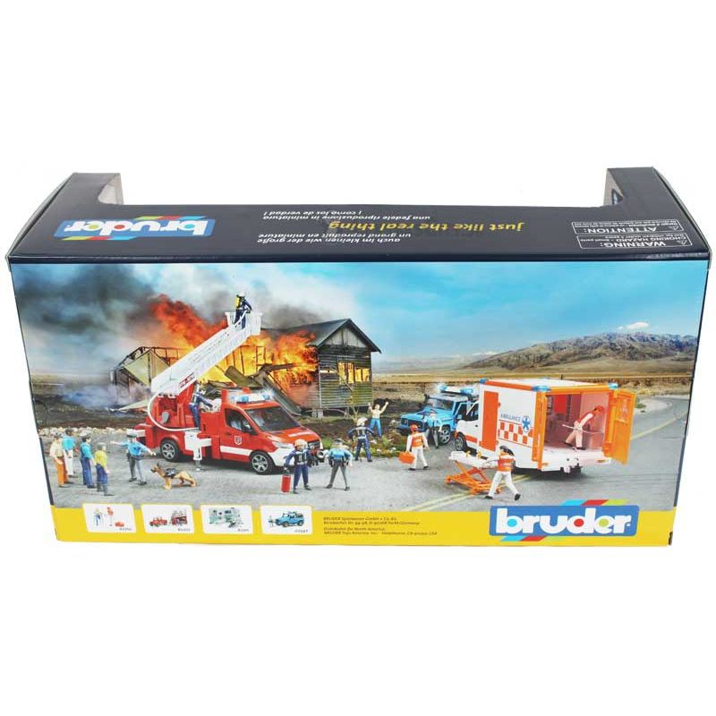 Kombinera med polisbilar, brandbilar från Bruder för en komplett räddningsstyrka.