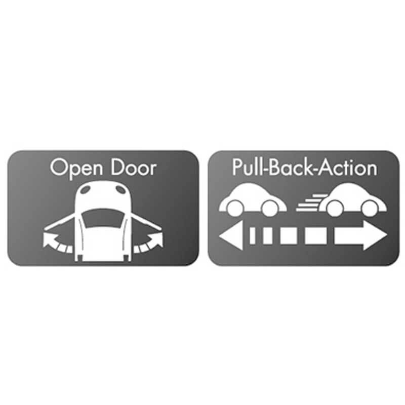 - En rolig funktion är att drar man bilen bakåt och släpper så åker den framåt. Hur skoj som helst!