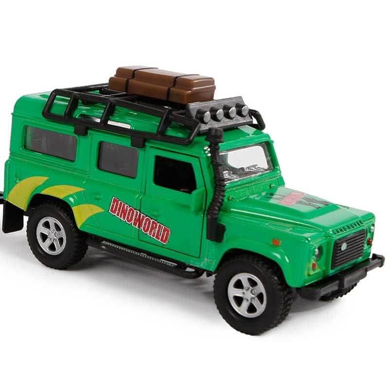 Ekipaget består av en Land Rover bil med ett släp och en dinosauriefigur som kan köras i släpet.