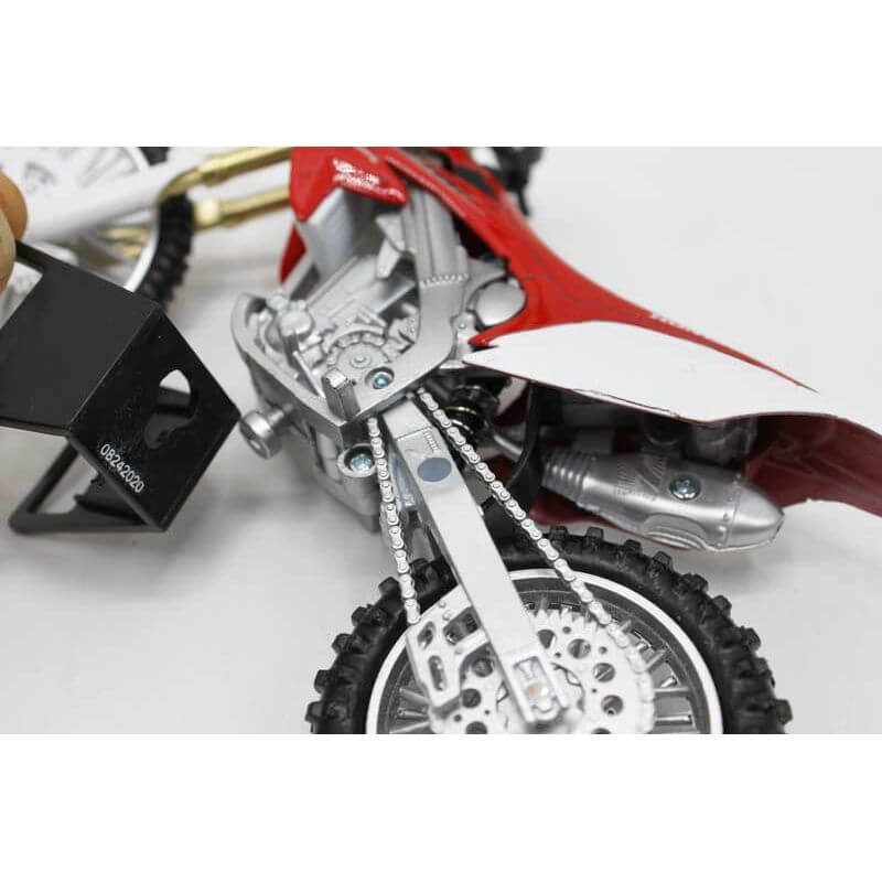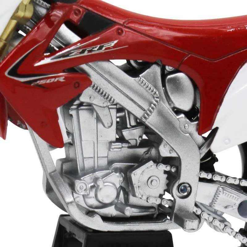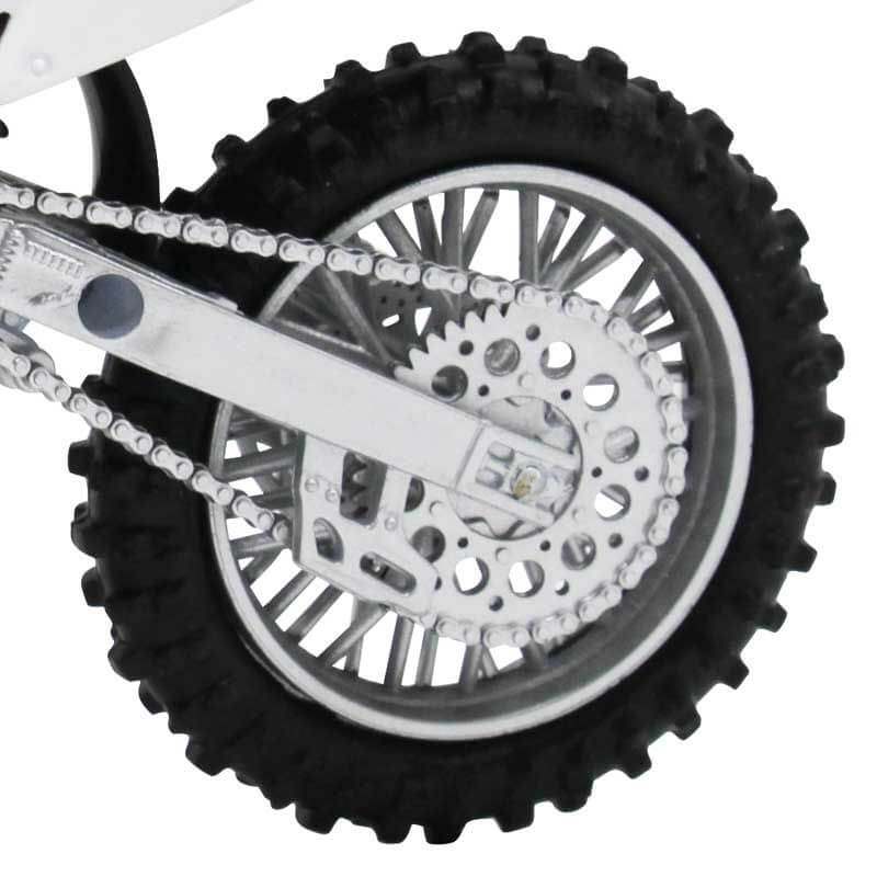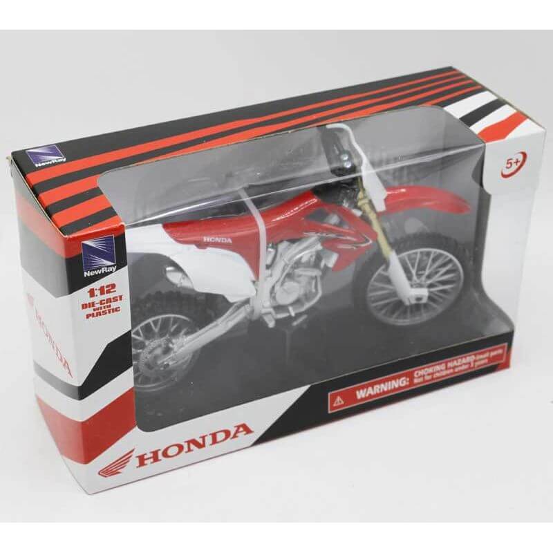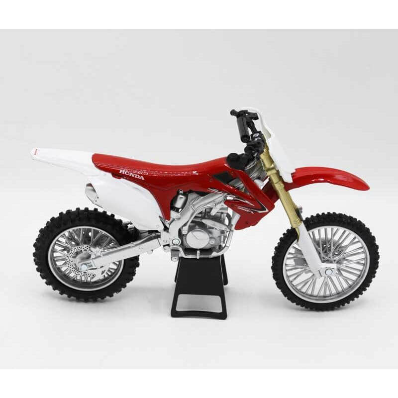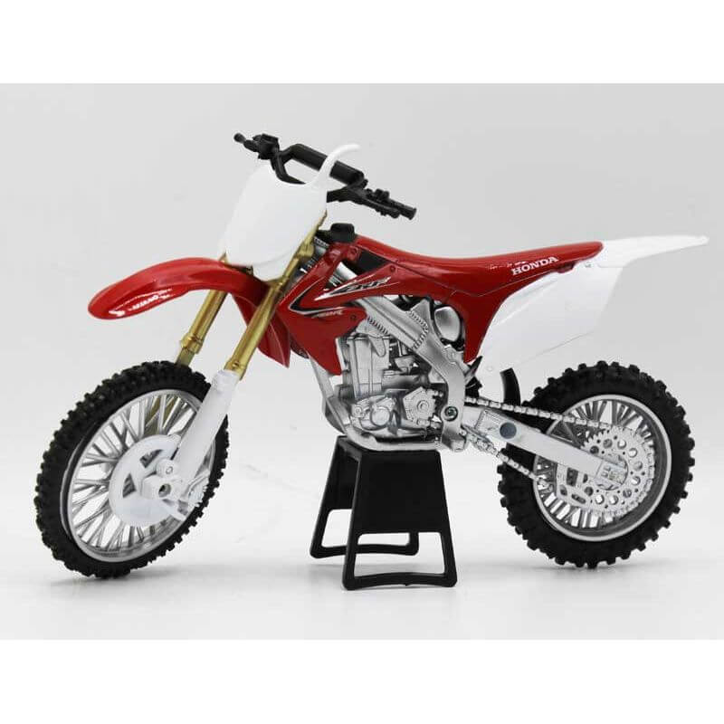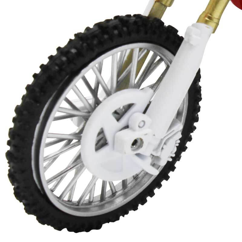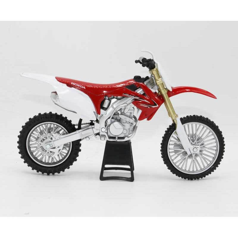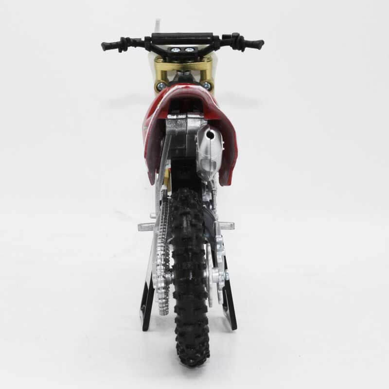 Motocross Honda CRF250R Lekaksmotorcykel som leksak till barn, en superfin lekakscross att leka med både inomhus och utomhus. Det är en Die-Cast motorcykel, i metall och plast. Motorcykeln köps så klart även för att ha den som samlarmodell i hyllan. Skala: 1:12. Längd: 18 cm.