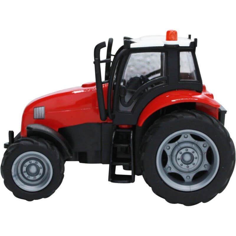 Kids Globe Leksakstraktor för barn till Kids Globe ladugårdar och bondgårdar. En fin traktor som ger ifrån sig motorljud då man trycker på en knapp. Den har även en lampa på taket som kan lysa och blinka. Tillverkad av metall och stöttålig plast. Passar perfekt till Kids Globe byggnader och tillbehör, klicka här. Traktorn finns i tre olika färger. Vilken färg du får blir en överraskning :). Längd: 11 cm.