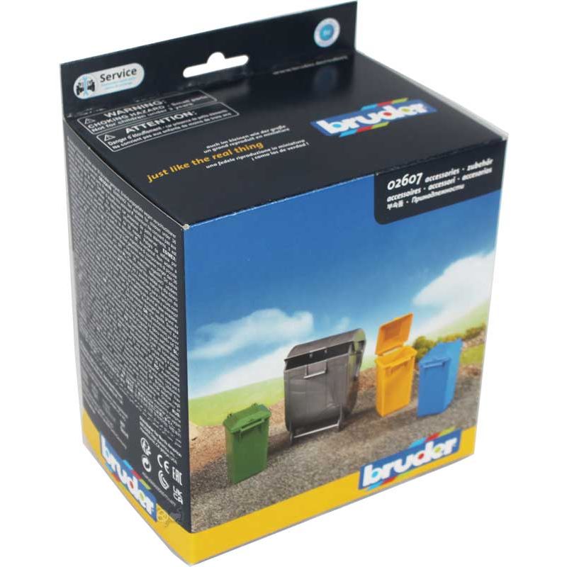 Bruder Soptunneset 02607 med 4 olika behållare för att slänga sopor i. Tunnorna kan användas tillsammans med sopbilar från Bruder eller använda dem som de är enskilt.