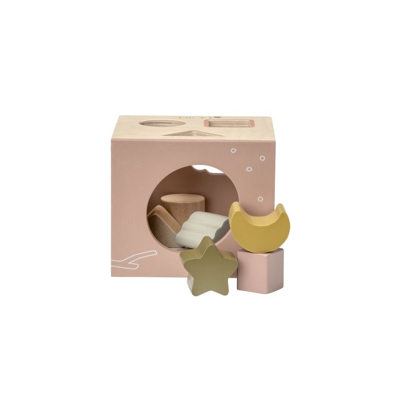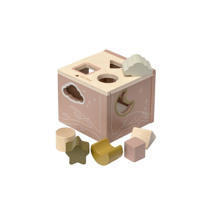Rätt form i rätt hål! Mickis klassiska plocklåda i trä inspirerar både till lärande och rolig lek. Träleksakens hål matchar träklossarnas form och färg så barnet vet vilka klossar som passar.