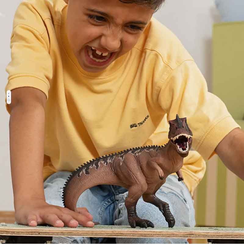 Schleich Giganotosaurus Dinosaurie 15010, Giganotosaurus och Tyrannosaurus rex är väldigt lika varandra. Båda var fruktade jägare, hade mycket korta armar, tog sig fram på två ben och hade stor skalle. Längd: 20 cm.