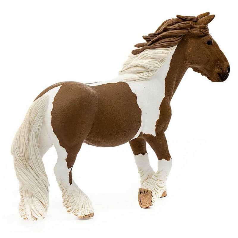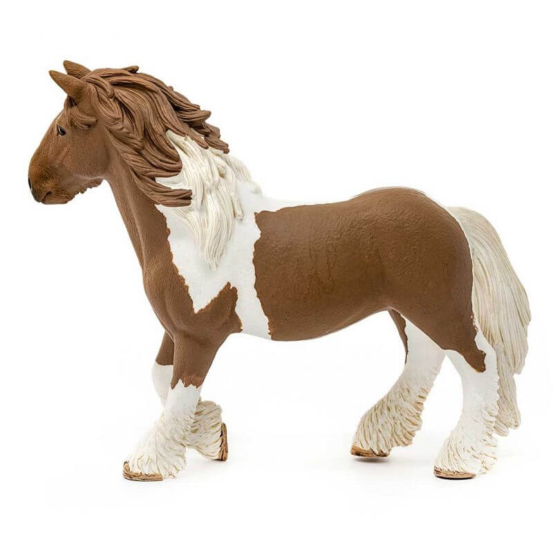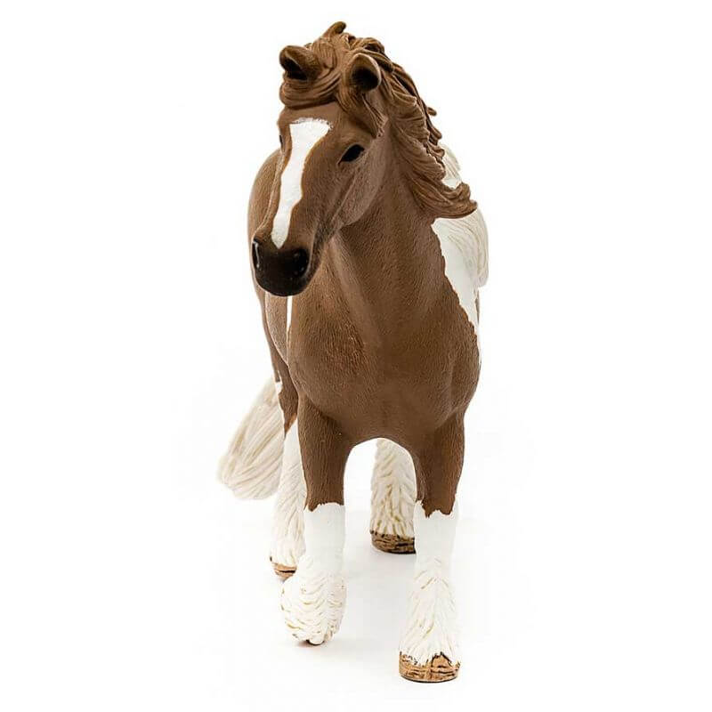 Schleich Tinker Sto 13773, ern vacker häst i brunt och vitt. Tinkerhästen har vacker fläckig päls, praktfull man, svallande svans och massor av hovskägg.