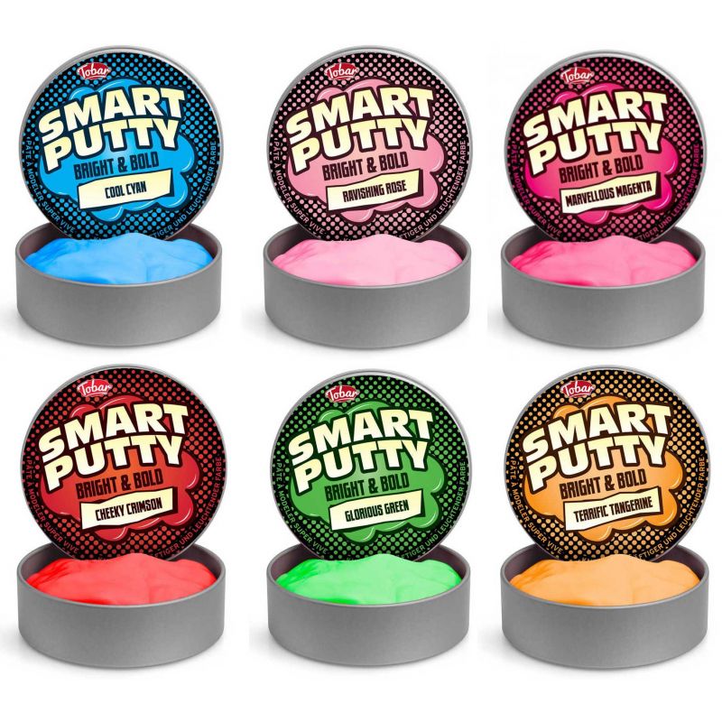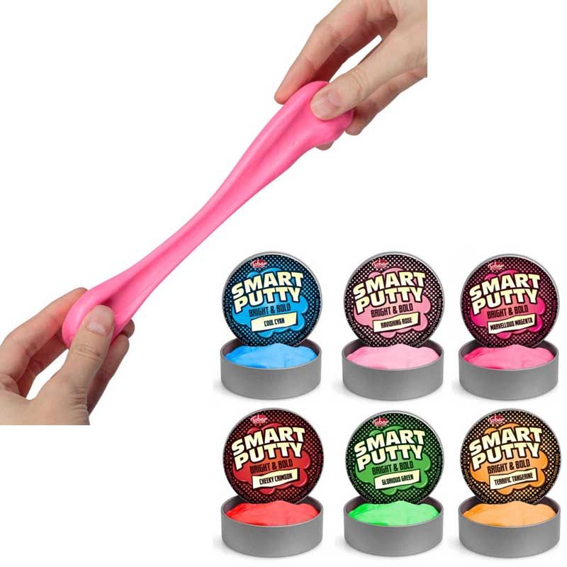 Smart Putty Bright and Bold Slime ett häftigt slime som går att forma som man vill. Konsistensen gör den behaglig att knåda, klämma och rolig att dra i. Vilken färg man får blir en överraskning. Antal: 1 st.