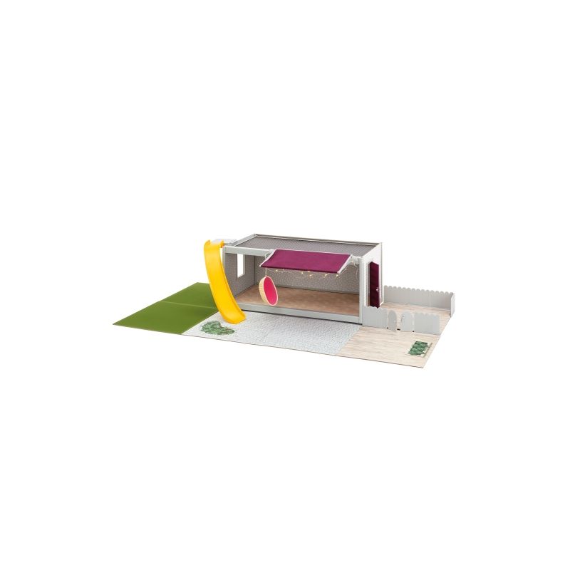 Låt dem njuta under en lyxig markis som går att rulla in och ut, eller varför inte låta en docka sitta i den fint hängande rottingstolen i skuggan. När skymingen kommer, tänd den mysiga utebelysning som lyser upp i sommarkvällen. Det ingår också en kul rutschkana där barnen i huset kan åka direkt från dockhusets översta våning - rätt ner på det mjuka gräset! Det här setet passar alla Lundby dockhus och har allt man behöver för att skapa en riktigt mysig sommarkväll för hela Lundbys dockfamilj. Dockhus, dockor och dockhusmöbler köpes separat. Uppfyller kraven i leksaksstandarden EN71 och gällande kemiska regelverk REACH och SVHC. Lundbys fina dockhus har alla detaljer man kan önska sig; vackra tapeter från Sandberg Wallpaper och mängder med inredning & tillbehör. Vår dockhusbelysning är försedda med batteridrivna LED-lampor och inbyggd timer. Med Lundbys dockhusmoduler kan dockskåpet byggas ut och byggas på för att skapa din personliga värld av dockskåp. Lundby - svenskdesignade, populära dockhus i olika modeller. Barnet kan skapa sin egen värld med dockhusen, dockhusdockorna av olika etnicitet och med olika funktionsvarianter, de detaljerade dockhusmöblerna, belysningen och de andra dockhustillbehören till Lundby.