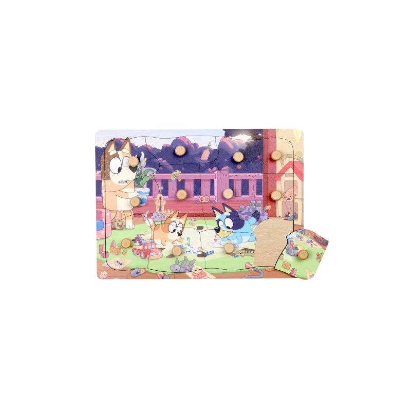 Pussla med Bluey! Med bitarnas greppbara knoppar och dom lekfulla illustrationerna inspiererar detta pussel till rolig lek.